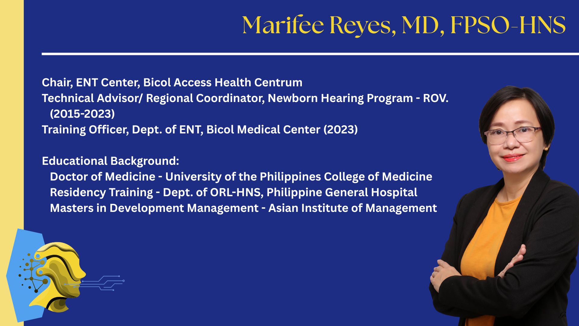 Maria Rina Reyes-Quintos, MD, MClinAud, PhD, FPSO-HNS
